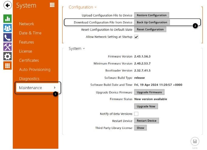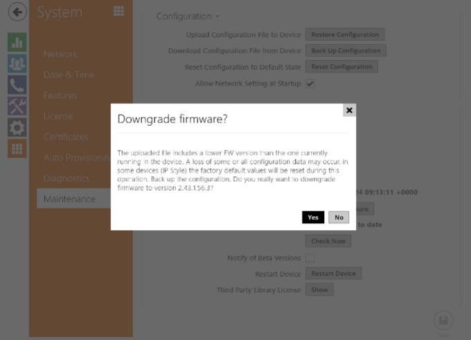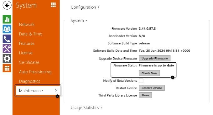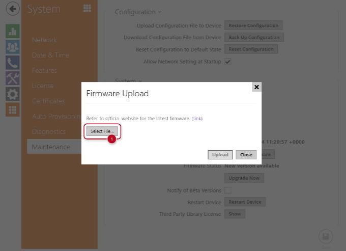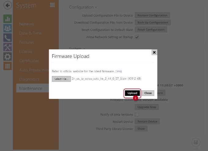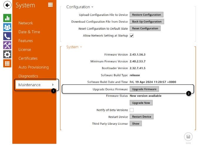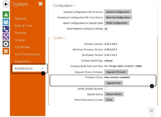 Just go to System – Maintenance and click on Upgrade Now button when the interom says that a new version is available.