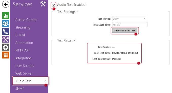 In section Services – Audio Test, let the speaker beep and the microphone pick it up .