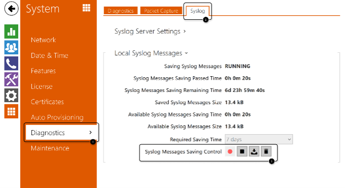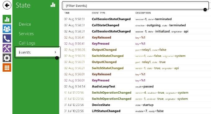 • In system logs, you can see all the device states and processes (e.g. pressing a button, switch activation, calling answering unit).