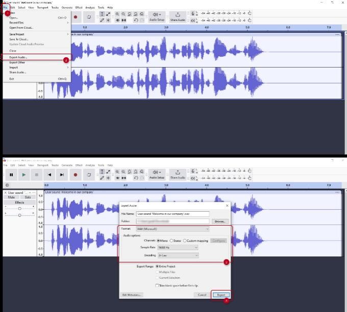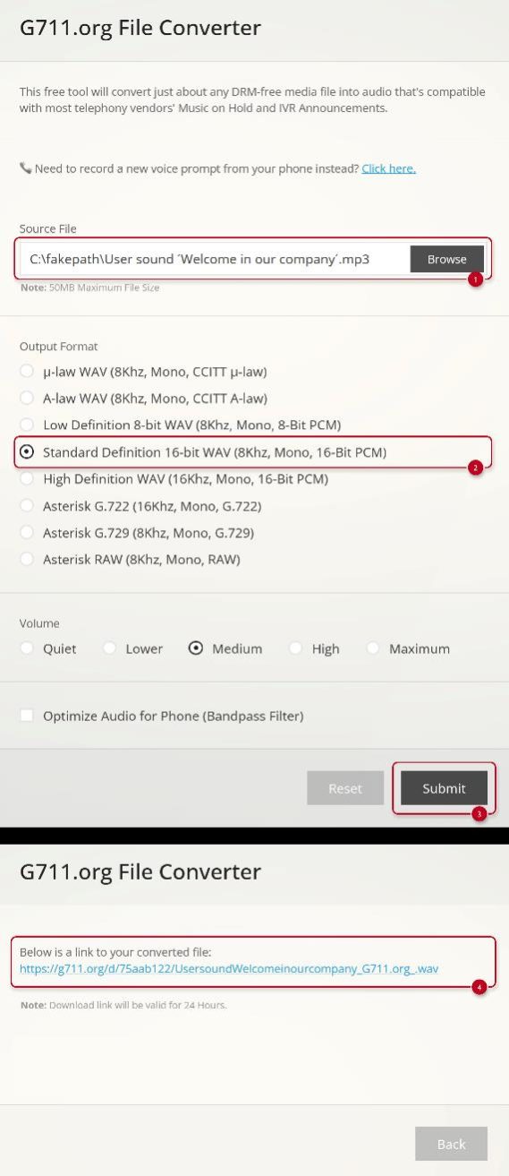 | WAV | PCM L8/L16, PCMA, PCMU, or G.722 | 8 or 16 kHz | 256 kb |