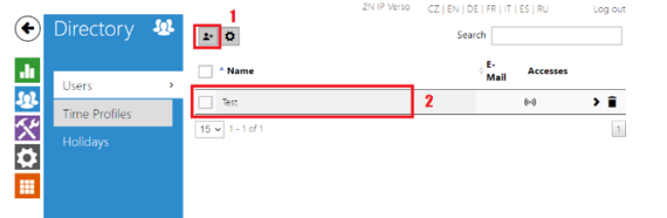Now please go to Directory -> Users. You can either create a new user (1) or edit an existing one (2):