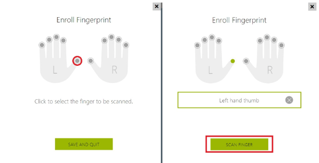 Now select the finger you want to use and click Scan Finger: