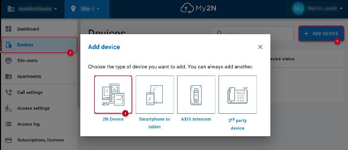 Add 2N IP intercom into your My2N site
