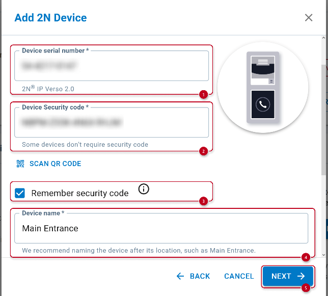 • In a newly opened window, please fill in details about your 2N IP intercom.