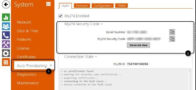 • Or login to the device´s web management and go to the section System – Auto Provisioning – My2N.