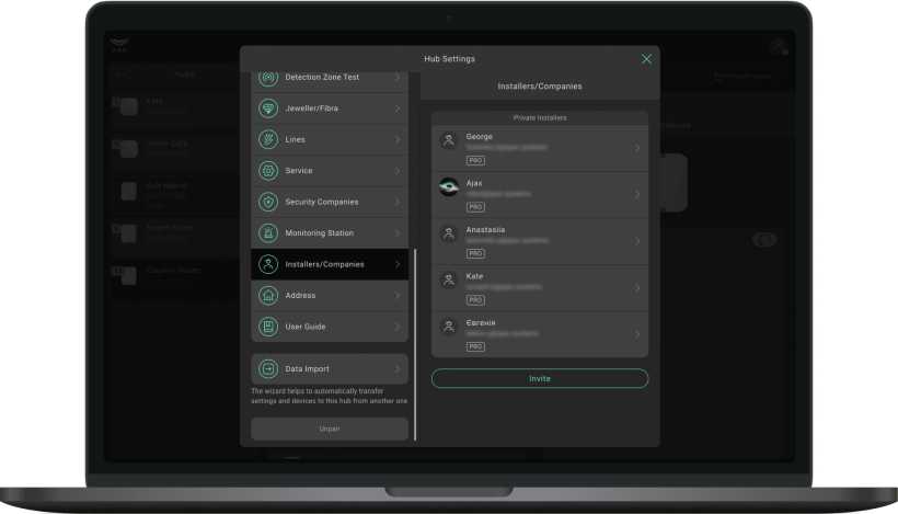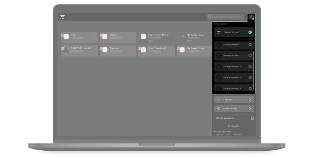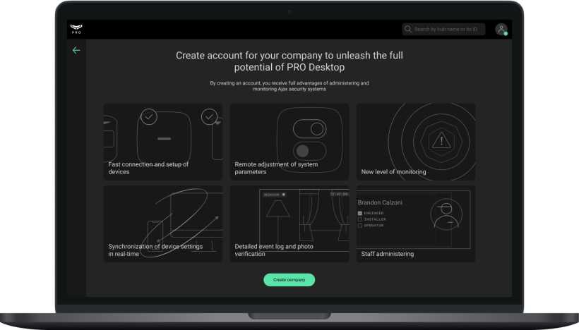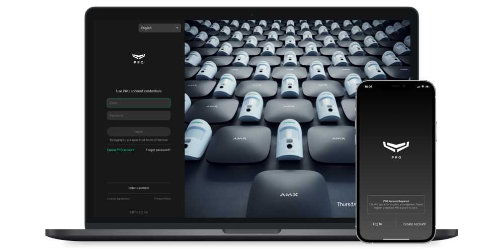 A personal PRO account is needed to connect to companies, as well as to set up and manage connected Ajax security systems.