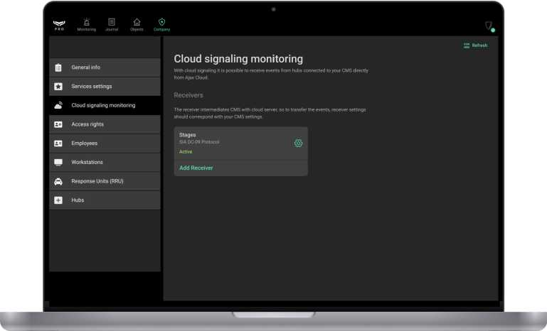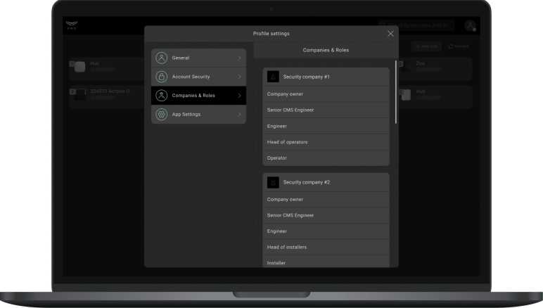 Company accounts are required for running the security business: monitoring alarms and events, maintenance, configuring, and installing Ajax security