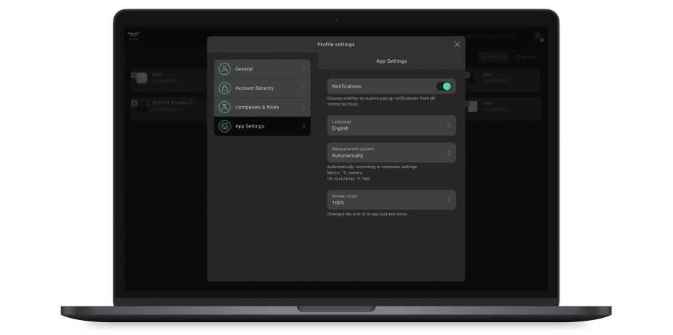 The PC PRO app is PRO Desktop. This app is available for Windows and macOS. In the PC app, you can create companies, manage their settings, add employees, and manage their rights. PRO Desktop is essential for monitoring and remote configuring of Ajax security systems.