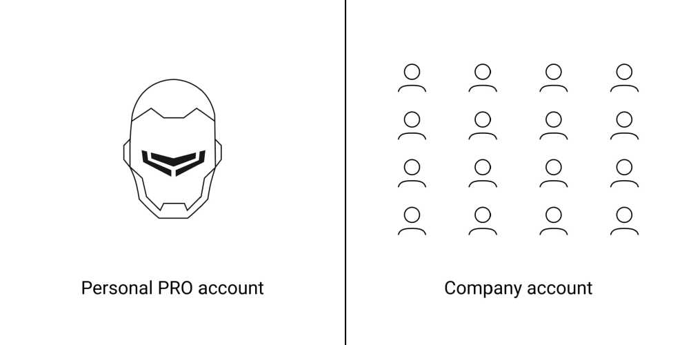 Two types of accounts are available in Ajax PRO apps: a personal PRO account and a company account.