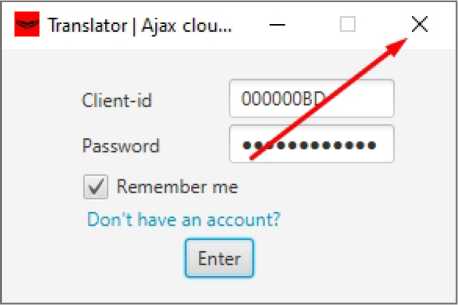 Important: at this stage, close the program by clicking on the cross in the upper right corner to apply the settings. If you click the Login button, Ajax Translator will not apply the settings and you will not be able to start the program again.