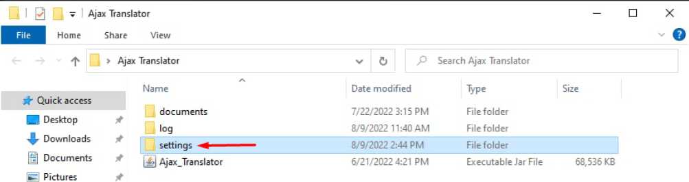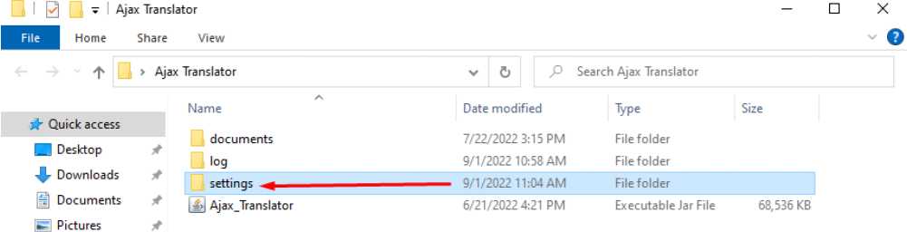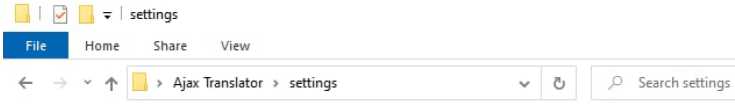 Open the folder with Ajax Translator files, go to the Translator Dist folder and then to the Settings folder.