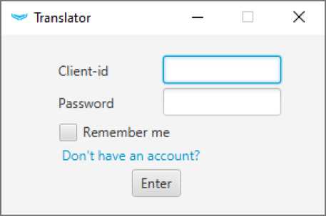 Launch Ajax Translator. Enter your user name and password, and click Enter. If you have specified the localhost IP address and port 9292 when configuring the event receiver, Ajax Translator will start immediately, since these values are set by default.