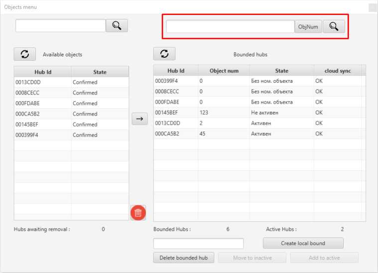 Go to the Objects menu in Ajax Translator, enter the eight-digit hub ID in the input field, and click the Create local bound button.