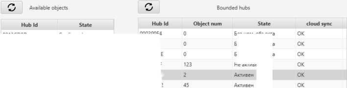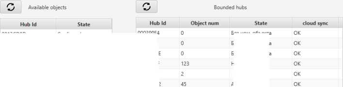 To connect the hub via a cloud server, the user with administrator rights should send a monitoring request by selecting a security company in Ajax application (Hub —> Settings —> Security Companies —> Select a company —> Send monitoring request). After that, the hub ID will appear in the list of available objects in Ajax Translator (table on the left).
