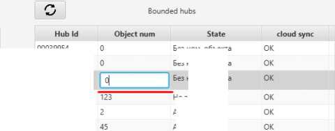 The hub will be added to the table on the right with console number 0. Doubleclick the cell in the Object No. column in the row of your hub in the table on the right. Write a free number to the object and press Enter on the keyboard.