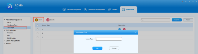 AMCS allows you to add additional leave types if the default ones cannot meet the actual needs. This feature is used in conjunction with the Leave Management.