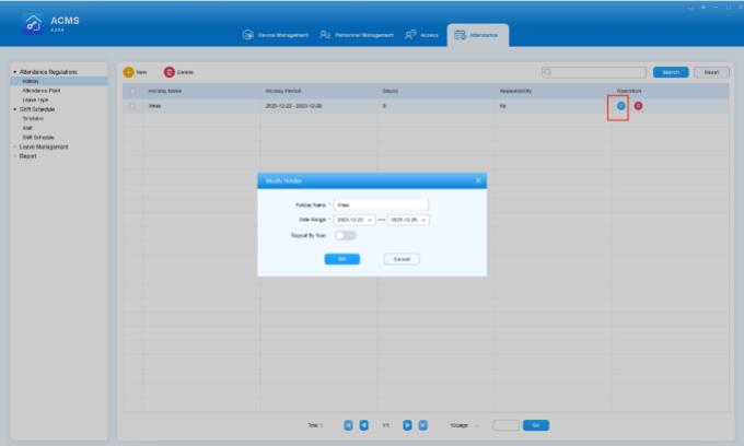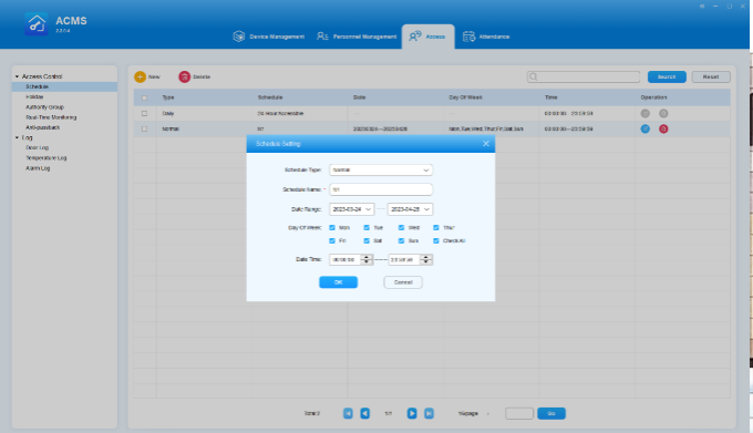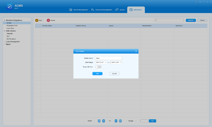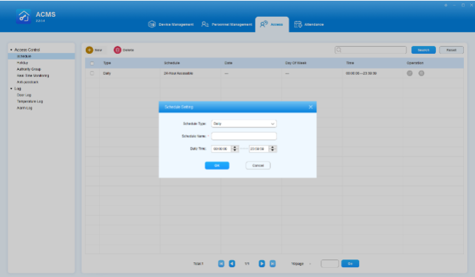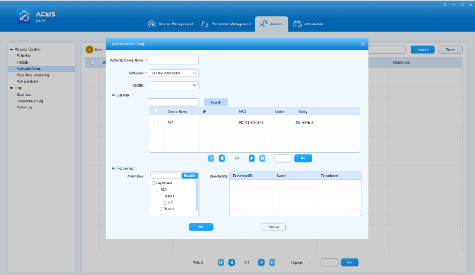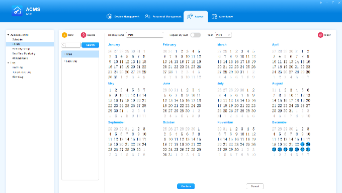 ACMS (Access Control Management System) is designed with the idea that personnel, devices, access control, personnel attendance and shift schedule etc. are separated in their configurations which can later be conveniently incorporated to form a complete and integrated access control and attendance management.