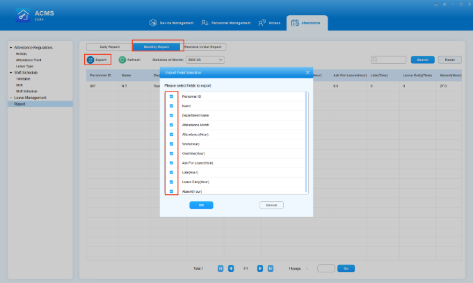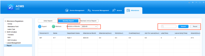 Search/Check/Export Monthly Attendance Report