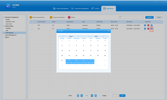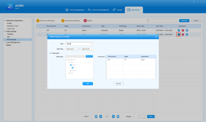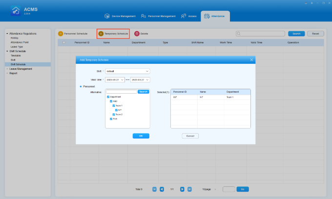You can assign a temporary shift schedule to the specific employees of the specific department when a temporary change or adjustment of shift for the employee is needed.