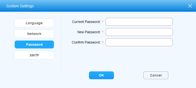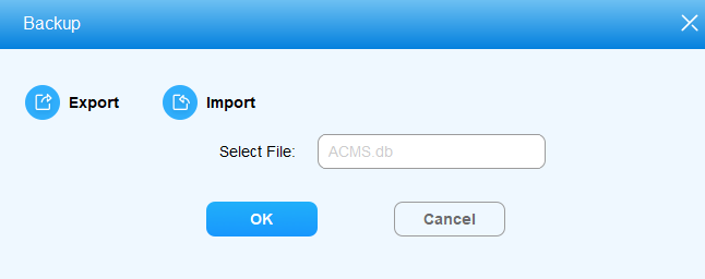 ACMS allows you to export the system data to your PC as a backup in advance, which can be later imported back to the ACMS in case missing data occurs. In addition, you can also create and modify the password.