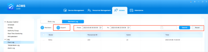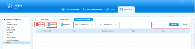 Check/Export/Delete the Recheck-In/Out Record