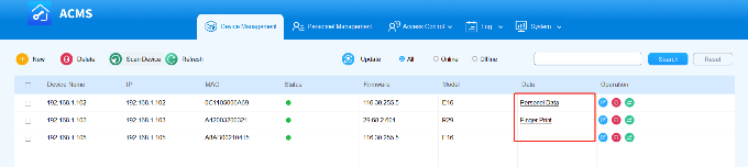 ACMS is able to facilitate the synchronization of door access authentication data, e.g., fingerprint and face data, between ACMS and the device(s).