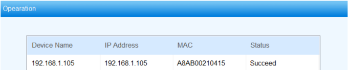 3. Click OK. Wait until the device’s status changes to be Succeed.