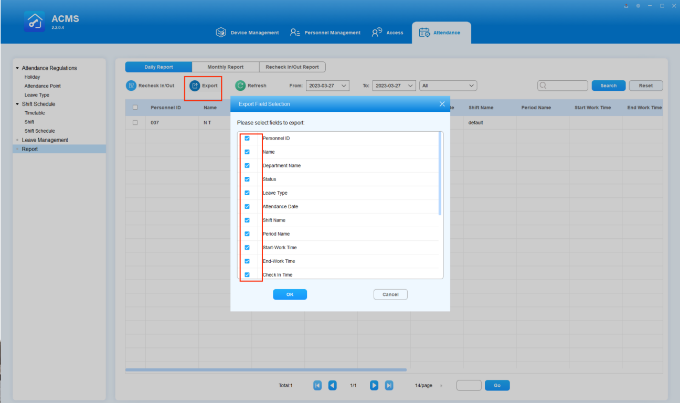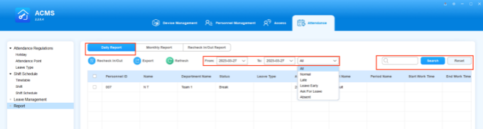 Search/Check/Export Daily Attendance Report