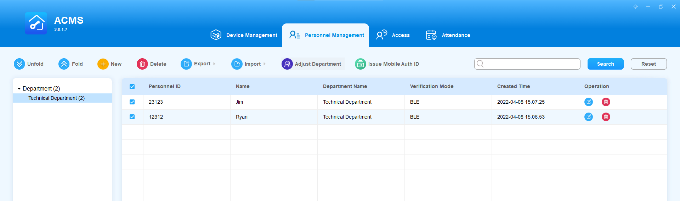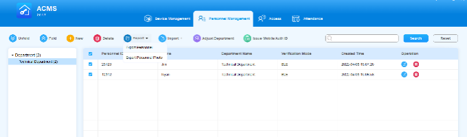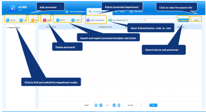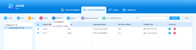 The Personnel Management module is primarily designed to manage department and personnel in terms of adding, deleting, editing personnel and department, importing, and exporting the personnel data and photos, and adjusting the department for personnel. You can also search the personnel to find the information needed.