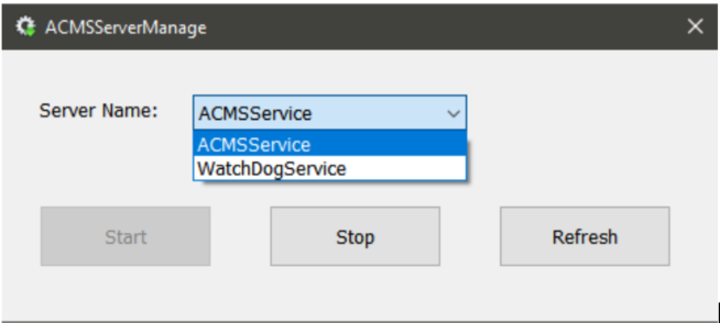 ACMSServer Manage is software that is installed along with the ACMS. The software is designed to provide two types of services called ACMSService, and WatchdogService.
