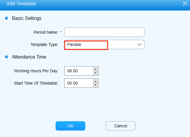 | 2 | Template Type | Select the timetable type between Flexible and Fixed. The type is Fixed by default.