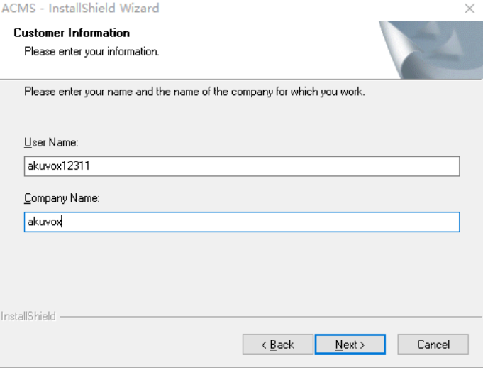 6. Enter the User Name and Company Name and click Next.
