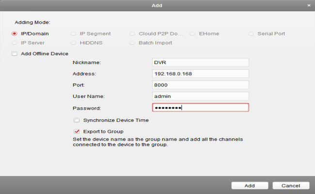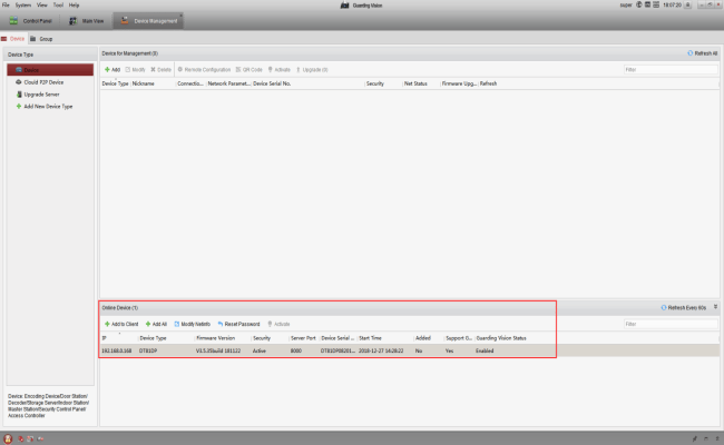 If the system and computer are in the same LAN network, you can see the device information under the Online Device list. Select your device, click on Add to Client.