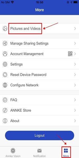 After that, you could check the screenshot of the camera’s image on the More–>Pictures and Videos: