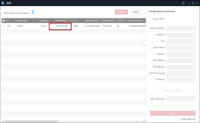 4.Run SADP and it will show the IP address of your DVR/NVR automatically.