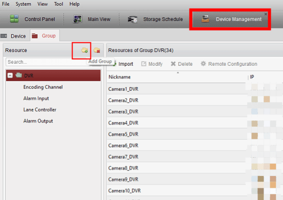 PS: If the camera list does not show any cameras, as shown below. Please go to the Device Management page and manually add the “Group” and name it. And then, please import the Group and select “import all”. Finally, we can go back to the Main View tab page, and click on the folder under the Camera list to expand the camera channels. Double-click on the channels to see the live streaming.