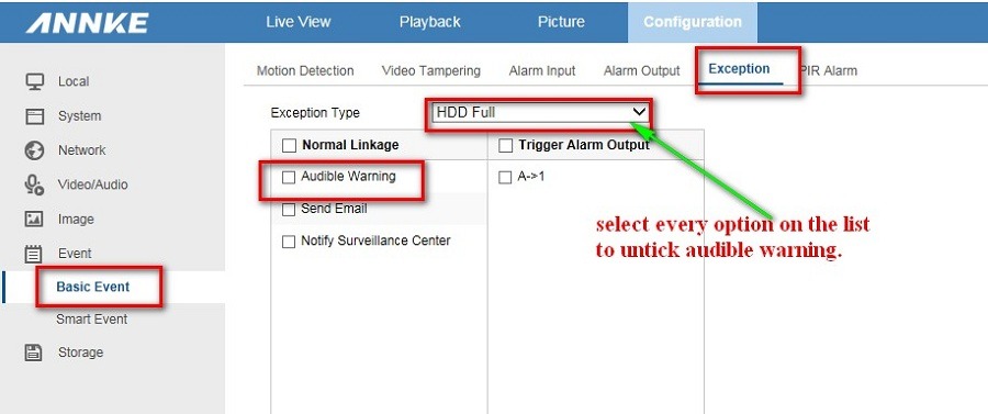 Annke Vision – How to Stop Audible Alarming Via the Browser?