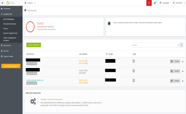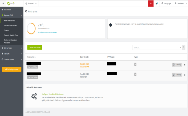 After you created an account on the NO-IP website, Click your name at the top right corner, go to Account, then Dynamic DNS