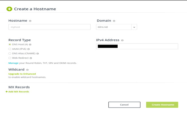 Create your hostname in the box. Leave other parameters as default, click Create Hostname