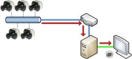 In a typical scenario, cameras are connected using network cables to a network switch. A camera can also be connected to a PC or laptop directly by using a cross‐over network cable between the camera and PC.