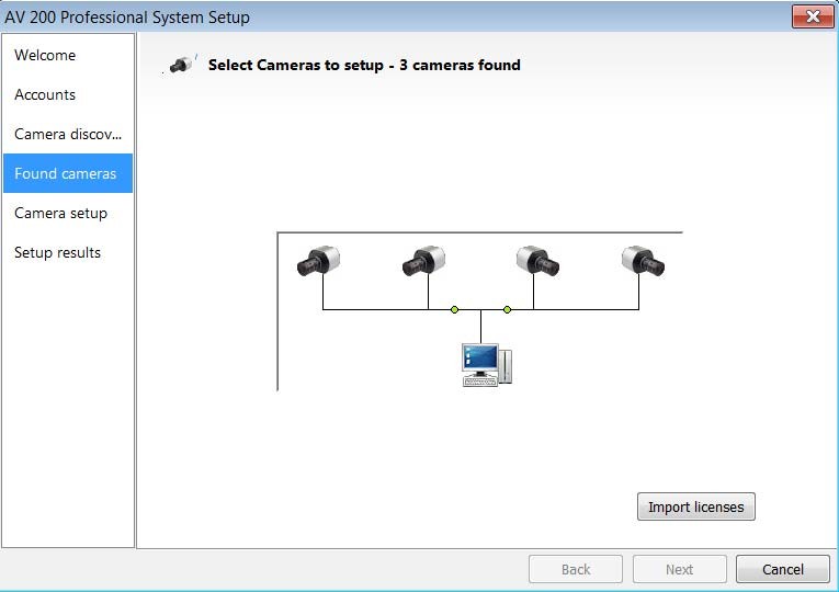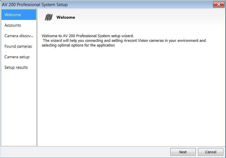 This wizard will walk through installing and configuring cameras on the AV200 system. This message may be encountered when the application is first launched.