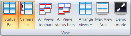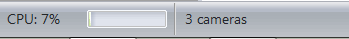 The Status Bar is shown across the bottom of the main window. CPU usage and number of cameras connected are displayed here. Events and current status messages are also displayed here while in progress. Motion event messages are displayed in a pop‐up from Windows taskbar notification area.