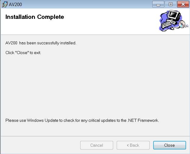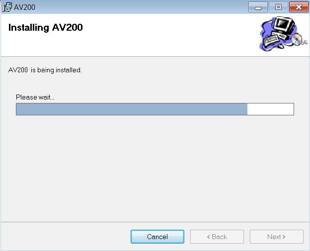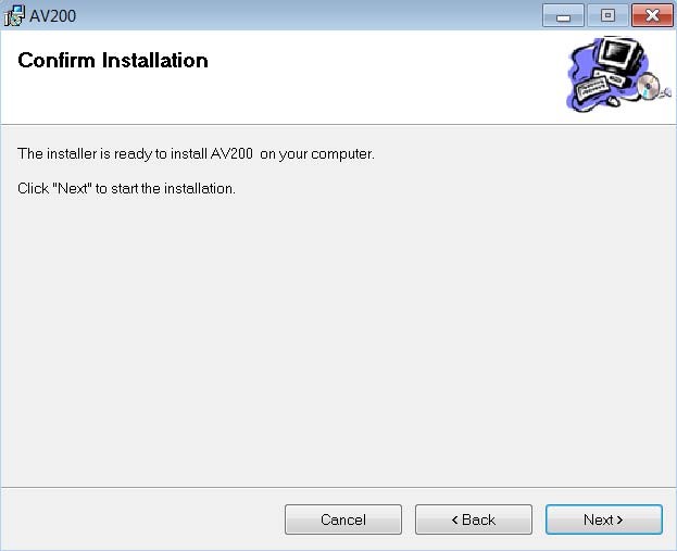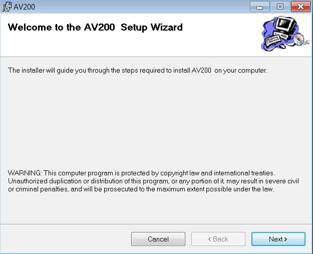 To begin the installation of the AV200 software, launch the AVsetup.msi installer (double‐click or right click and chose Open).