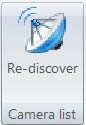 The AV200 software will scan the network for discovery of new cameras on start up, and when manually prompted by the Re‐discover functions found on the Home ribbon bar, and in the Camera List Window menu. This menu allows the user to configure periodic camera discovery automatically and to specify the software behavior when a new camera is discovered. Checking the option to Run Automatic Re‐discovery and selecting a time interval in minutes will tell the software to automatically run the discovery process at the interval set.