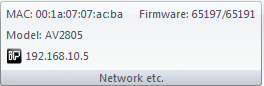 When the AV200 software is launched, there are three main control elements in the main window. These can be found to the upper left of the main window.