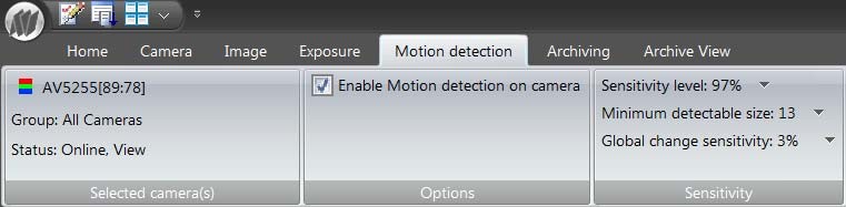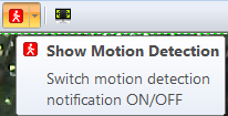 This tool allows display of active areas of motion detection in the image when the Motion Detection tab is displayed. If the Motion Detection tab is not currently displayed the tool offers options in a dropdown menu to switch the ribbon bar to this tab.