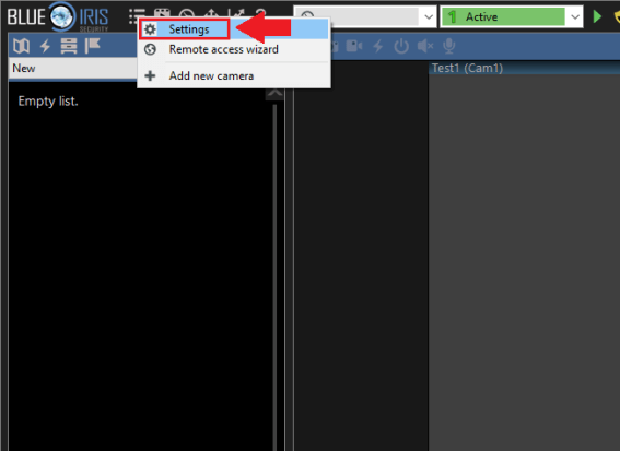 Step 1: Open your Blue Iris software and click on the Settings option (