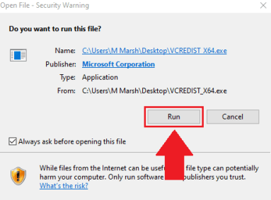 A resolution will be based on the which version of Windows you are running. For instance, if you are operating on a 64-bit version of Windows you will need to search and run the VCREDIST_X64.exe to resolve the issue. If you have a 32 bit system you will run the VCREDIST_X32.exe.