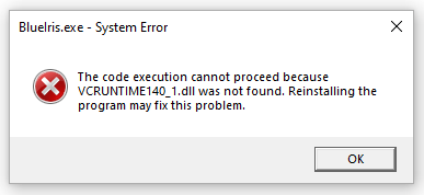 this is not a result of a bug or issue with the software itself but is a result of an update made to Visual Studio C++ compiler which is the software used to build Blue Iris. To resolve the issue, a simple reinstall of the software will fix the problem, however, if you wish to resolve the issue without reinstalling the software, please refer to the information below.