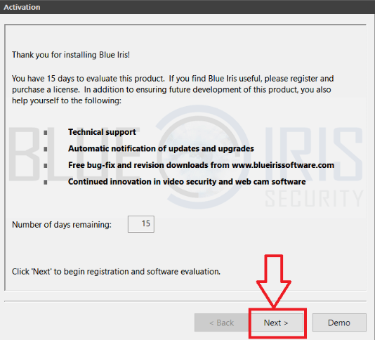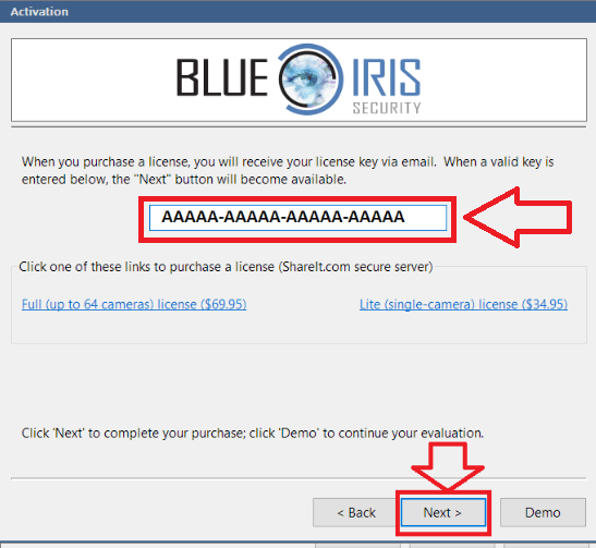Follow the on screen instructions to install the software. You can use the demo version or purchase a license. There is are options for a fill license (up to 64 cameras) for $69.95 or a Lite license for a single camera for $34.95.